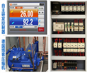 壓縮機(jī)采用德國(guó)博客或德國(guó)比澤爾,自主研發(fā)控制器可遠(yuǎn)程操控、故障畫面顯示,多重保護(hù)裝制;